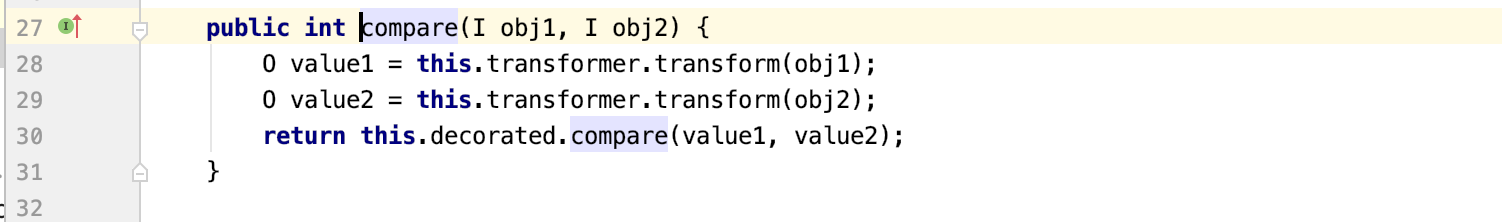 在SiftDownUsingComparator函数中,继续跟进comparator.compare函数。此时进入的是TransformingComparator的compare函数,如下所示