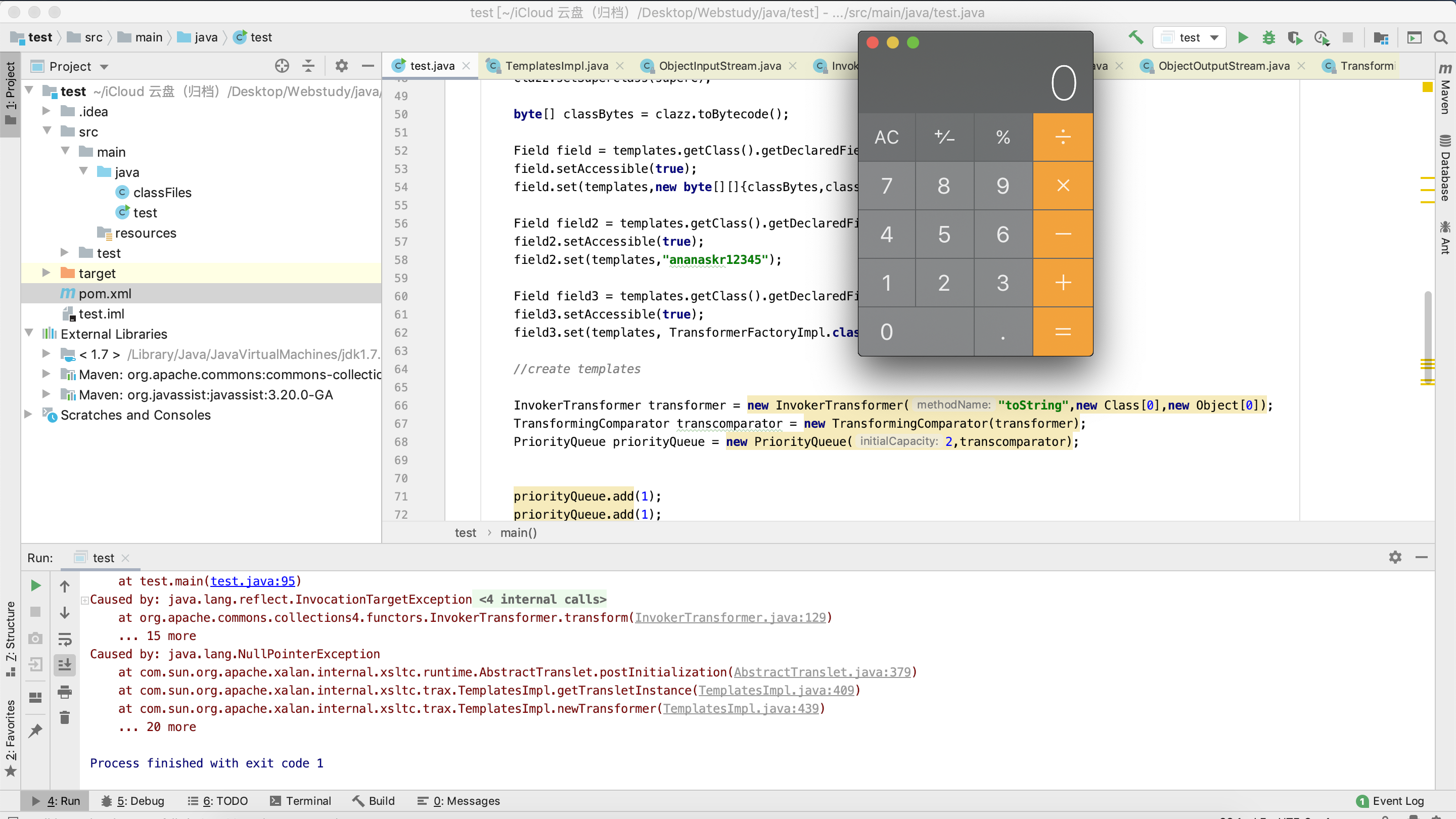 构造payload 根据上面的分析可以得知,需要指定PriorityQueue类的comparator变量为TransformingComparator类,而TransformingComparator类中的Transformer需要是InvokerTransformer。很容易写出如下的payload