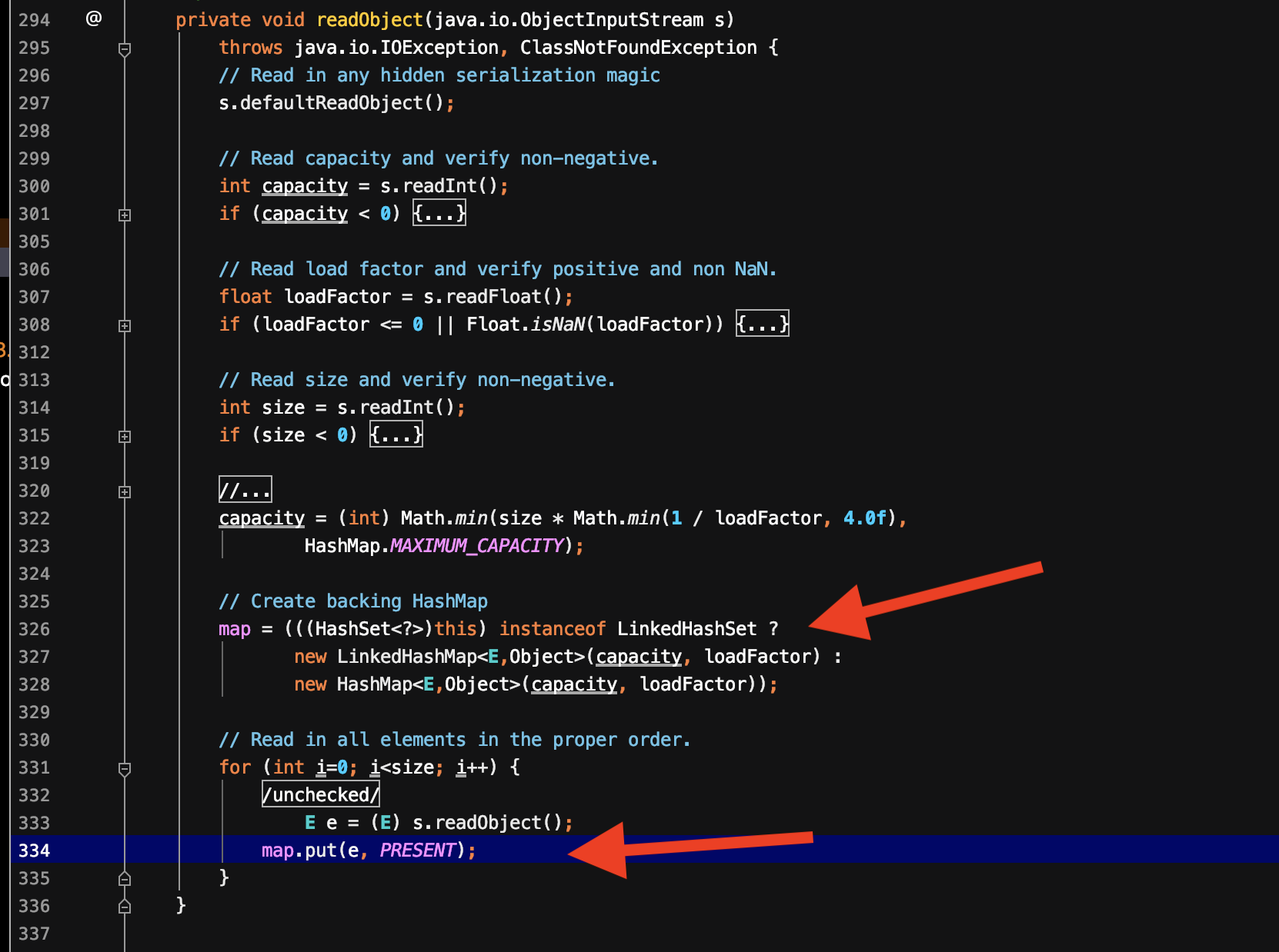Field f = null; try{ f = HashSet.class.getDeclaredField("map"); }catch(NoSuchFieldException e){ f = HashSet.class.getDeclaredField("backingMap"); }