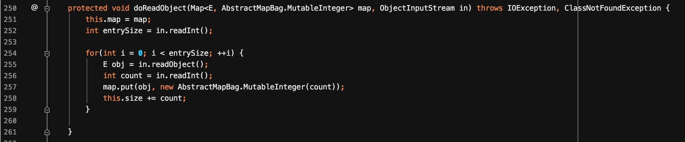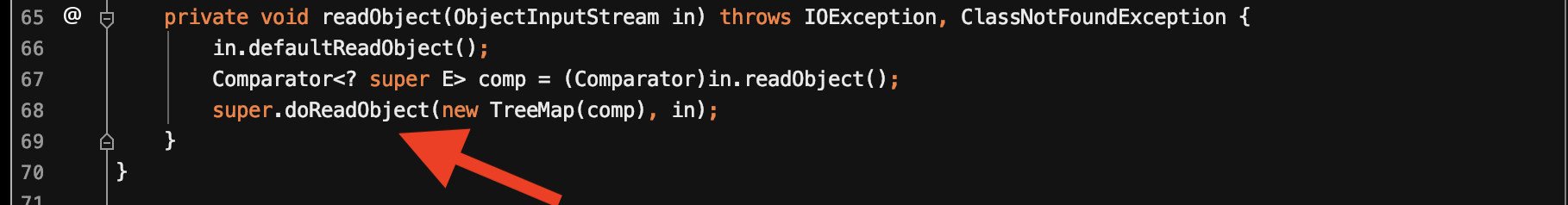 事实上,在TreeBag的readObject中,会进行TreeMap的实例化,只需要