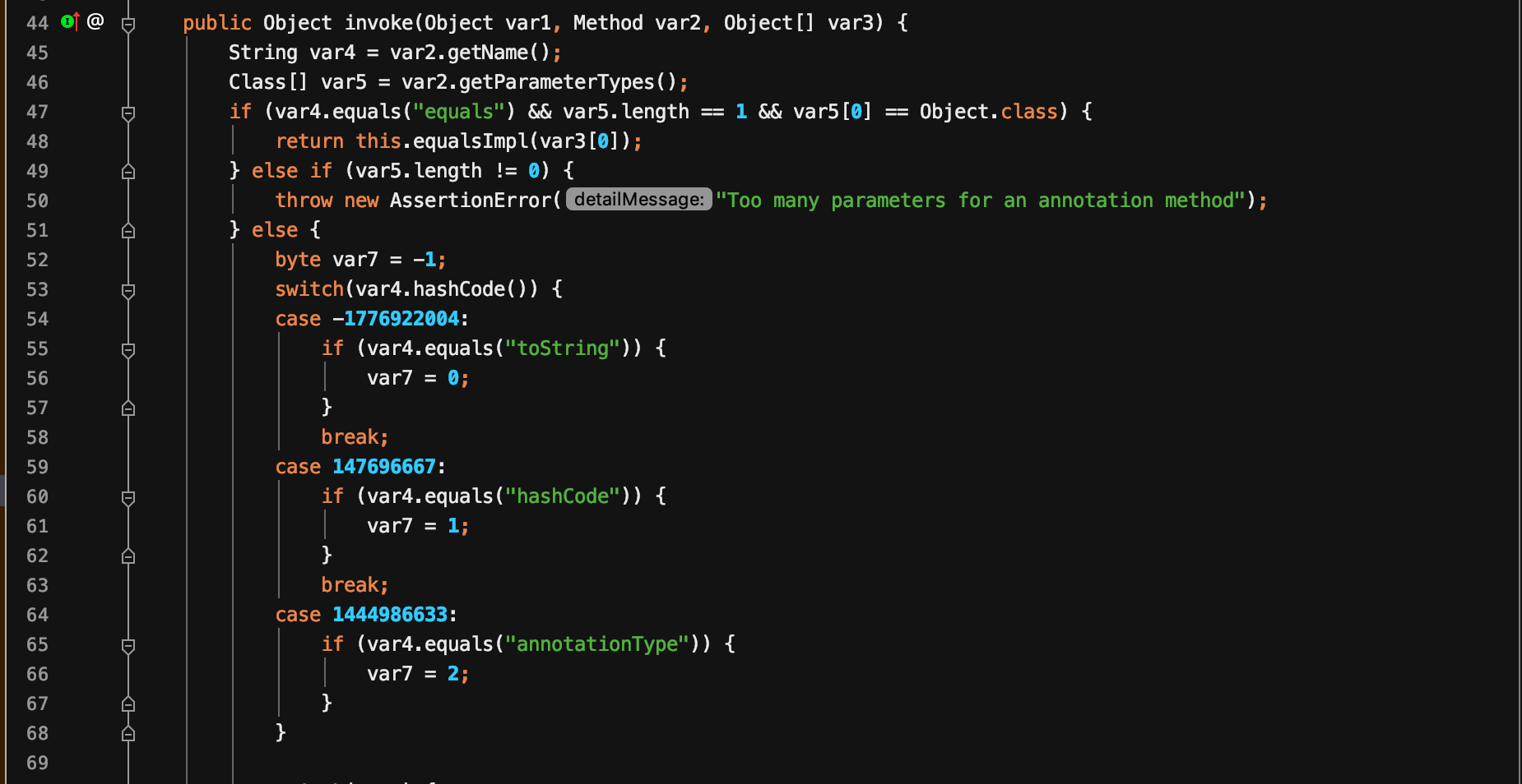 在反序列化过程中,我们会遇到AnnotationInvocationHandler这个类,它实现了InvocationHandler这个类,来看看这个类的invoke方法
