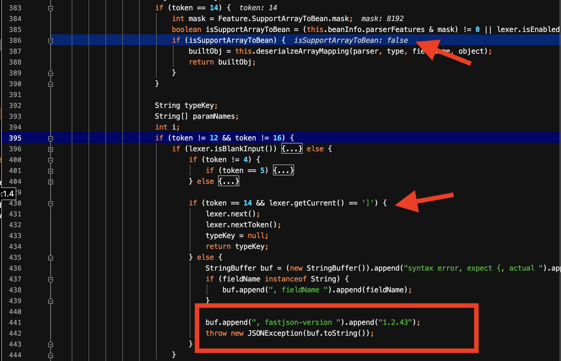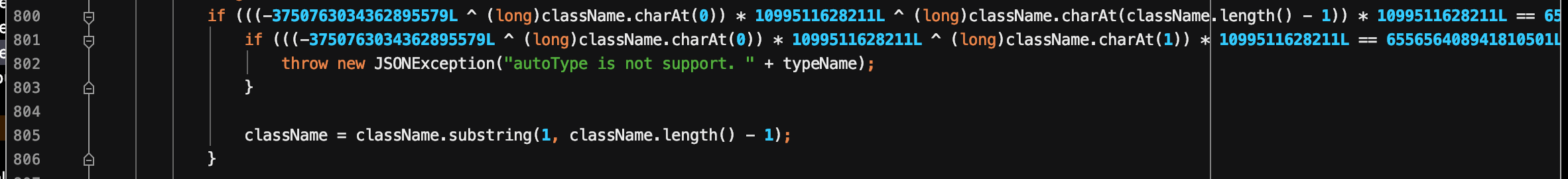 从这个补丁可以看出,在1.2.44版本中,它删掉了原来的判断LL的方式,而是改为了若以[开头或以;结尾,都会抛出异常。