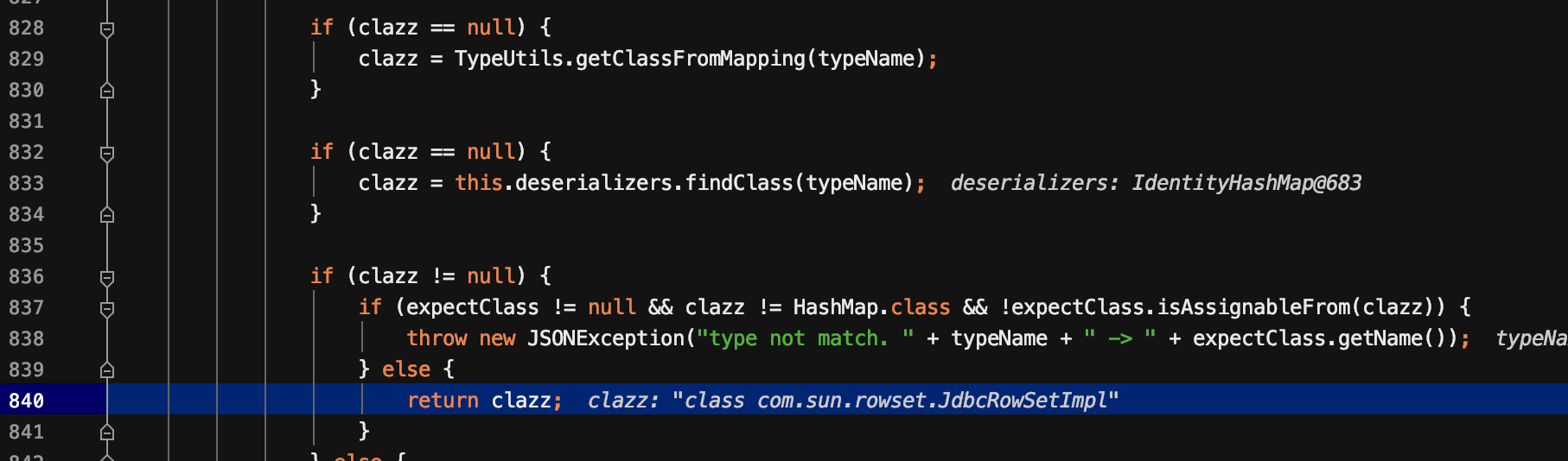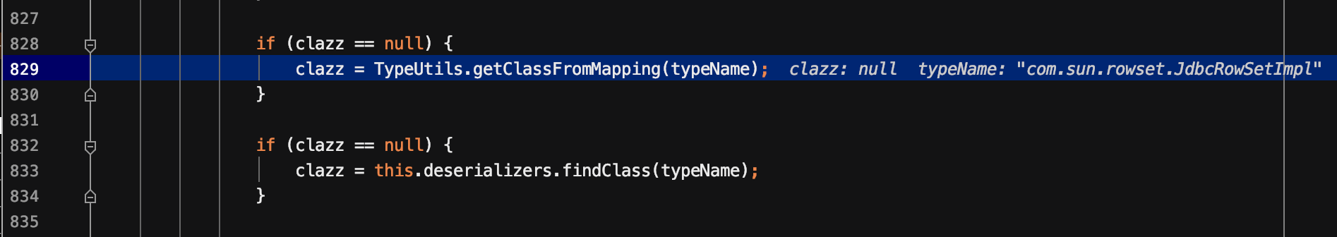 此时clazz为com.sun.rowset.JdbcRowSetImpl类从而直接return了。