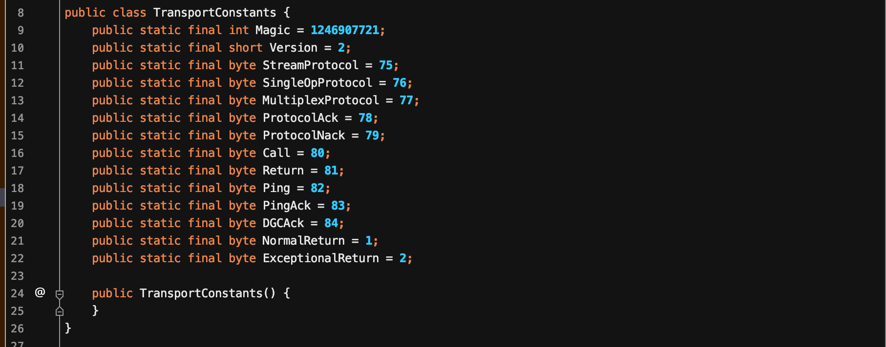 它会向当前连接中发送81这个传输返回码,然后发送1这个值以及ID。到这里注册中心的部分完成了,继续往回看服务端的处理。关于81以及1这个数字的含义如下。发送81代表是返回,而紧随的数字1,表示是正常返回。