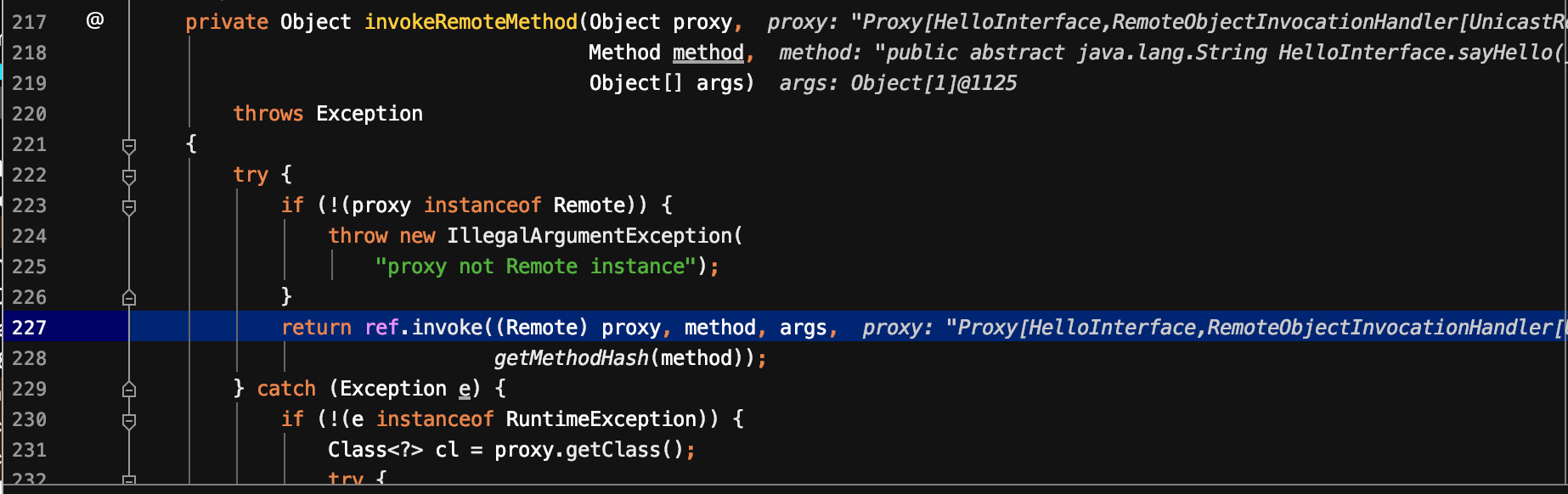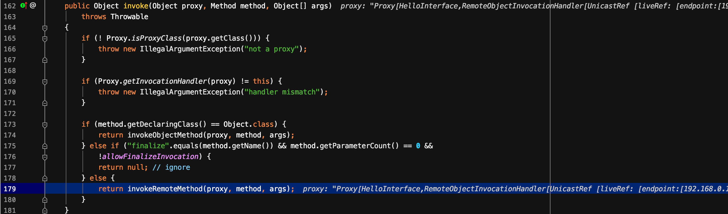 [客户端]客户端在完成lookup查询后返回的远程对象Stub使用RemoteObjectInvocationHandler类进行动态代理,即在调用其任何方法之前,必须先调用RemoteObjectInvocationHandler#invoke方法。
