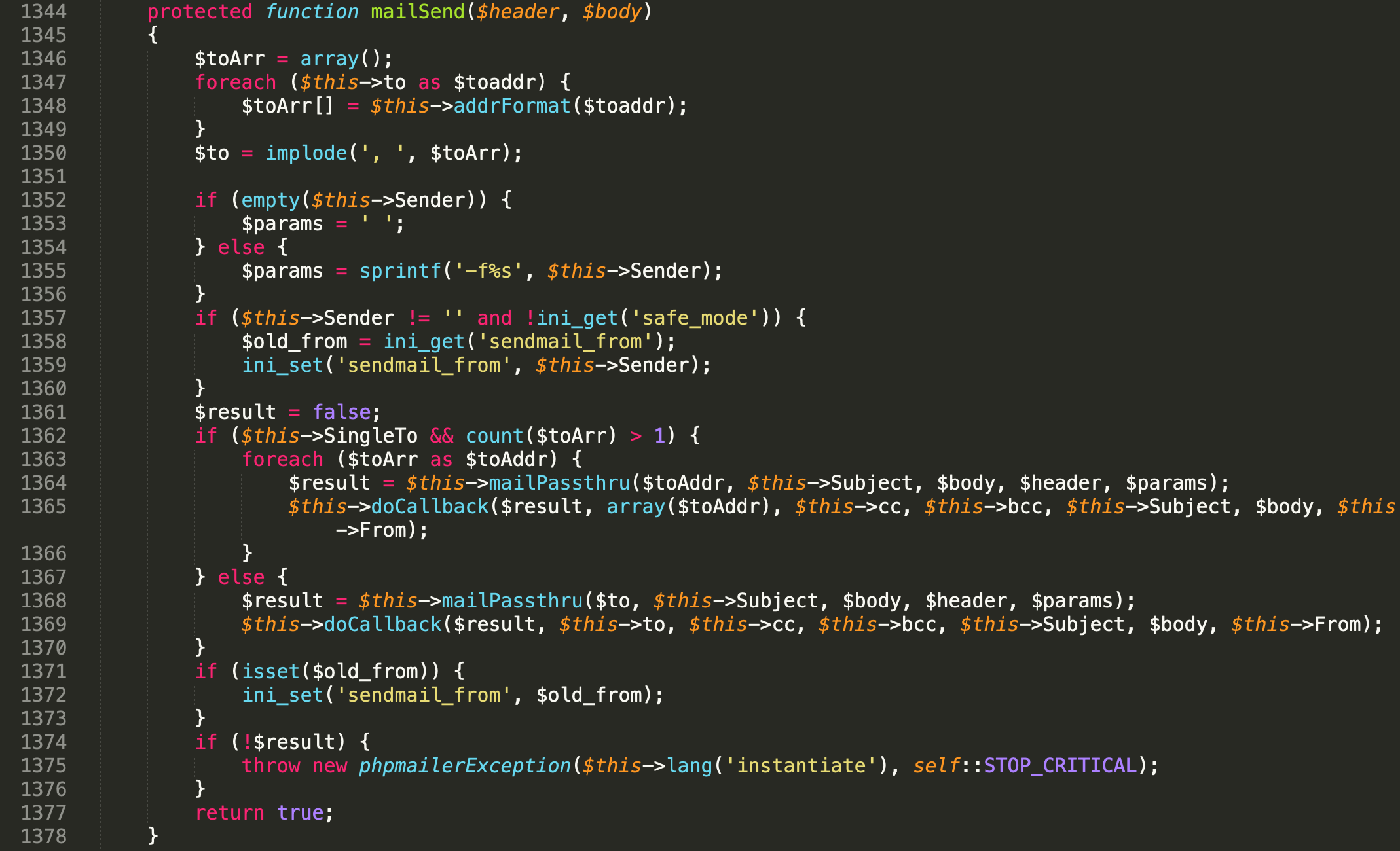mailSend()函数中,然后调用了mailPassthru()函数。