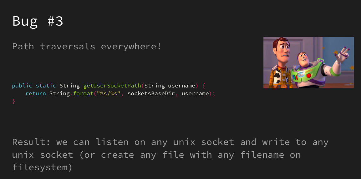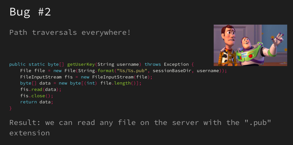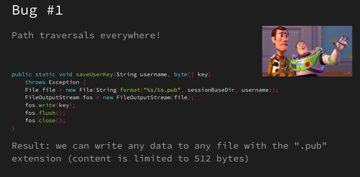 这道题目给出了源码,从源码中可以看出,无论是在生成public key或者unix socket文件时,都存在目录遍历漏洞,可将文件写在任意位置。