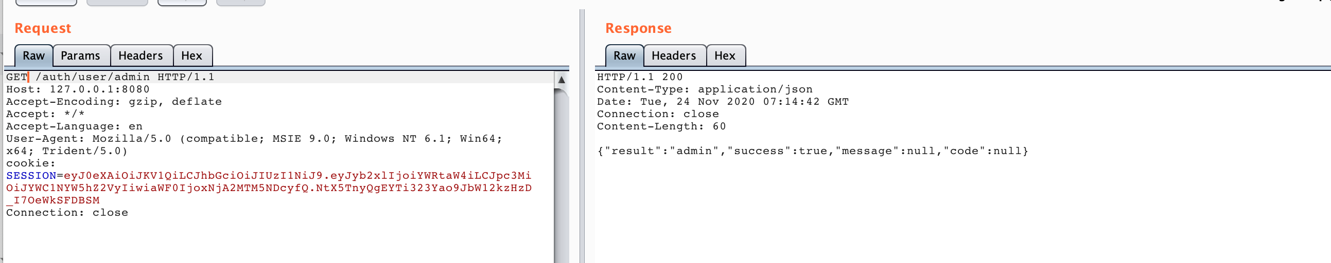 正常情况下,/auth/user/<username>返回的是一个JSON响应。